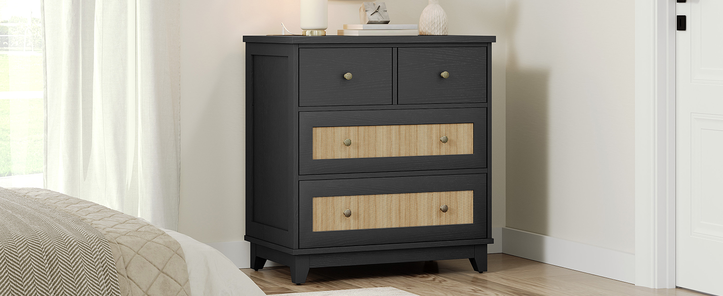 - Massive Storage: Measuring 27.6″L x 15.7″W x 29.6″H, the rattan nightstand features 4 drawers for easy storage of books, documents, and personal items, while its spacious top holds table lamps, photo frames, potted plants, and more, keeping your living space organized